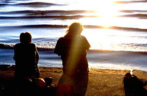 You leave the path and start walking across the sand, shivering in the chill wind. The sand has been churned by people's feet during the day -- the footsteps are dark holes, outlined in orange like a million open mouths screaming at you silently. By and by you come to a line of giant rocks built at right angles to the beach, commonly known as a groyne. You stand on the rocks and analyse your situation. Where will you sleep tonight? You can't think straight when you're this tired. O.K., I'll give you some pointers. You COULD go to my place, which is within walking distance. You COULD find alternative accommodation, but the only place around here that you could afford is an old, grotty, run-down place called The Paradise Motel. Or, one of your options is that you could just lie down on these rocks right here and try to sleep on them.